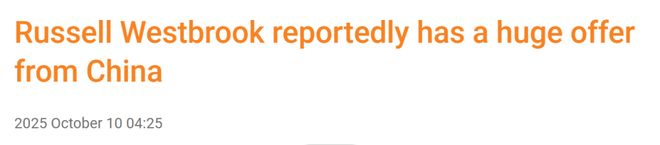 北京时间10月10日,威少目前仍未与NBA球队签约,由于在NBA市场缺乏吸引力,他或许有机会前往海外打球。据国王队记卡迈克尔-戴夫透露,威斯布鲁克收到来自中国球队的重磅邀约。